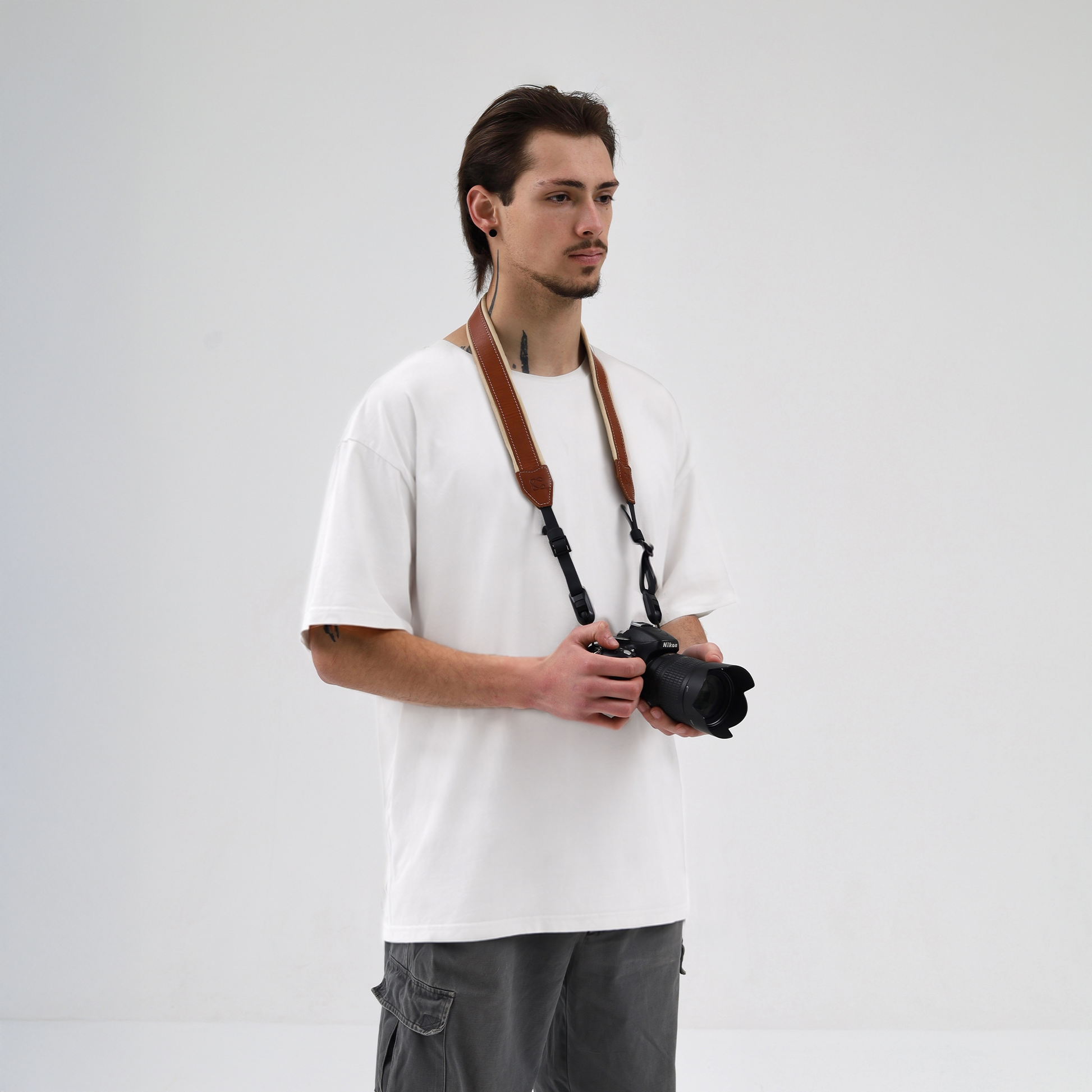 Experience exceptional comfort with this soft padded full-grain leather camera strap, designed to distribute weight evenly and reduce neck strain during long shoots. The secure quick-release system supports up to 35 kg, allowing instant attachment or removal for travel and active photography. Hand-stitched leather offers classic style and durable quality, while the adjustable length provides a perfect neck or cross-body fit. Ideal for vintage and modern DSLR, SLR, and mirrorless cameras.